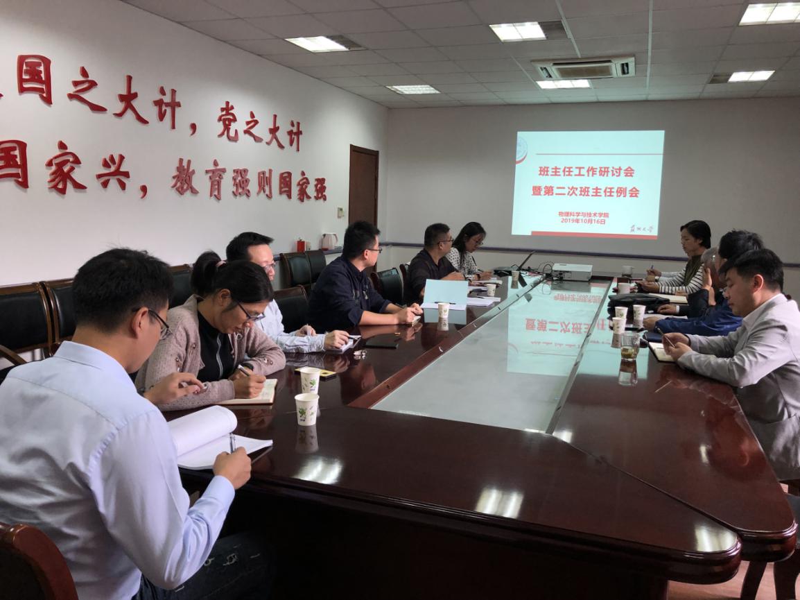 随后,党委副书记谢燕兰就当下皇冠博彩重点中心工作做了部署,团委副书记郭永坤也针对皇冠博彩团委的近期工作做了汇报交流。之后,各年级辅导员、班主任就当下班级工作做了充分讨论。19级物理学一班的陈亚红老师分享了针对新生开展的一系列增强班风和班级凝聚力的活动,如:组织新生在早自习集中训练英语四级听力、创建班级微信公众号、设计班徽等,给其他班级提供了很好的借鉴。会议最后,皇冠博彩党委书记孙德芬做了总结发言。孙书记表示:纸上得来终觉浅,绝知此事要躬行,要把两位老师传授的经验在我们的日常工作中内化于心,外化于行,要在今后的实践当中不断去体会、去实践,做到知行合一。她强调,班主任和学生接触最多,要注重思想引领,培养学生德智体美劳全面发展,特别是意识形态建设。要注重与学生“玩”在一起,要把握一定的度。希望各位班主任用心、用情、用力做好班主任工作。