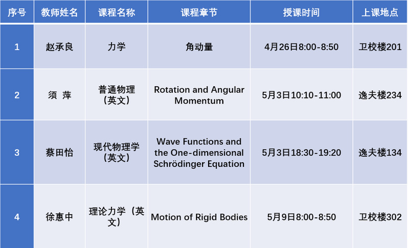 赵承良老师讲授“力学”示范课,回顾“天宫课堂”陀螺运动试验,介绍“心怀祖国、勇于创新、甘于奉献”的陀螺精神,引出教学主题“角动量”及“角动量守恒”,赵老师结合科普教育,通过润物细无声的方式有机融入思政内容,注重对学生思想价值的引领。须萍老师带来一堂生动的《普通物理》(英文)习题课,结合雨课堂信息化教学手段实现了实时互动,及时掌握课堂答题情况,帮助学生更好把握转动及角动量章节的重难点。蔡田怡、徐惠中老师分别讲授《现代物理学(英文)》与《理论力学(英文)》,结合演示实验,积极与学生互动,引导启发式授课。四位老师的课堂展示出了各自的特色和风采,起到了公开示范的重要作用,也成为皇冠博彩推广优质课程的重要渠道。