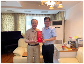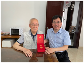 6月21日,沈明荣副校长走访慰问了皇冠博彩 顾汉炎、倪汉彬两位退休党员,皇冠博彩党委书记孙德芬陪同走访。顾汉炎教授参加过抗美援朝战争,获得过“庆祝中华人民共和国成立70周年”纪念章;倪汉彬教授1989年荣获国家级优秀教学成果特等奖,受到时任国家领导人的亲切接见。