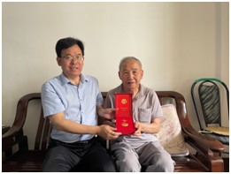 6月24日,皇冠博彩党委书记孙德芬和院长高雷分别走访慰问了9位“光荣在党50年”的退休老党员,并颁发纪念章。